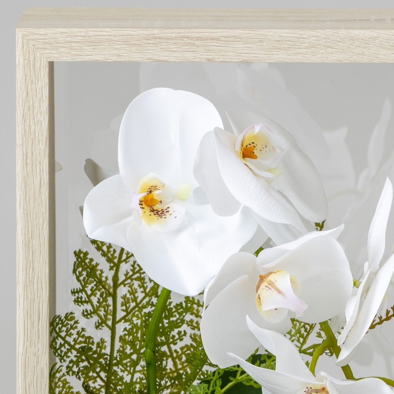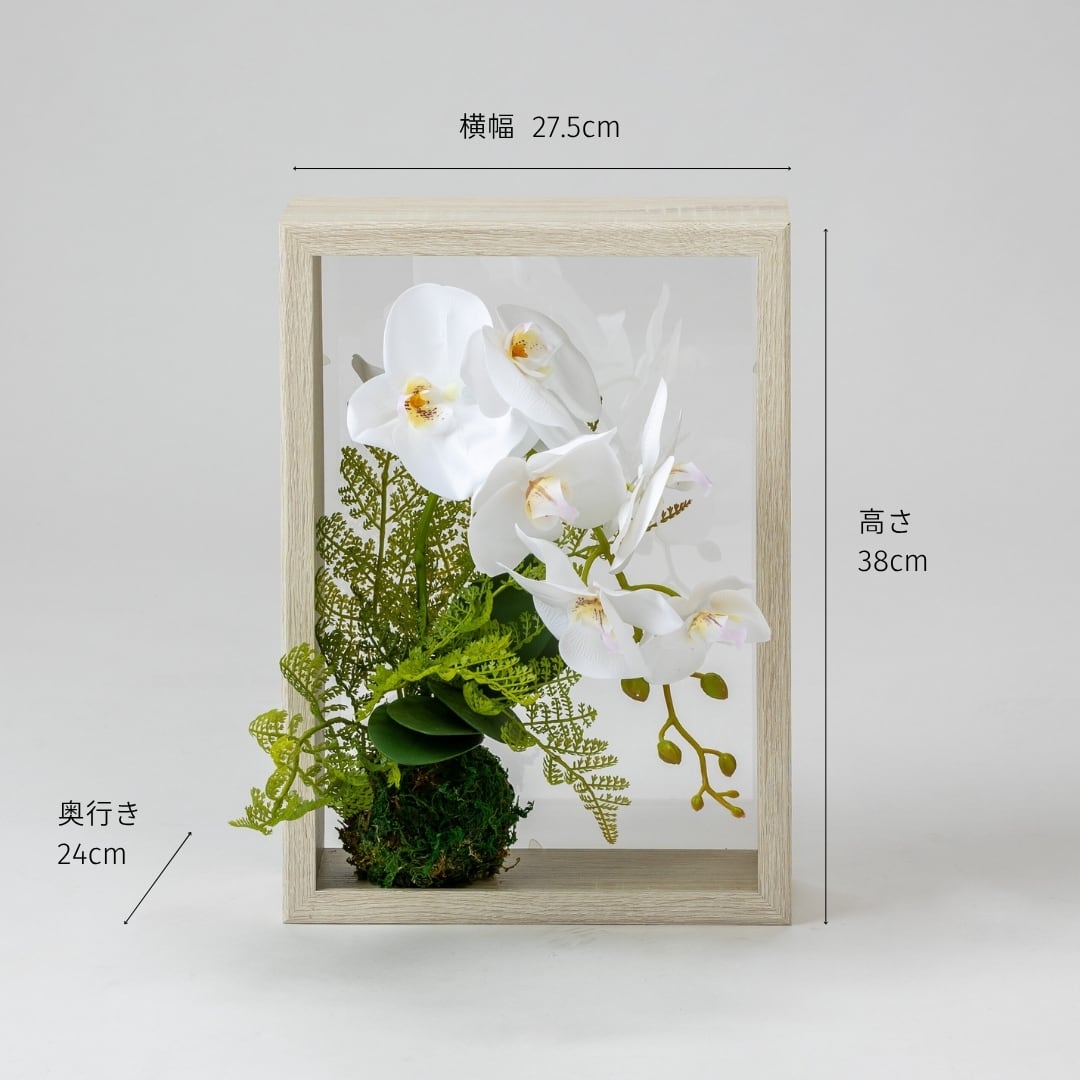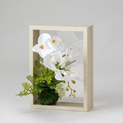 ナチュラル木目のフレームに胡蝶蘭をあしらった立体デザイン。優しい色合いで空間を上品に彩ります。