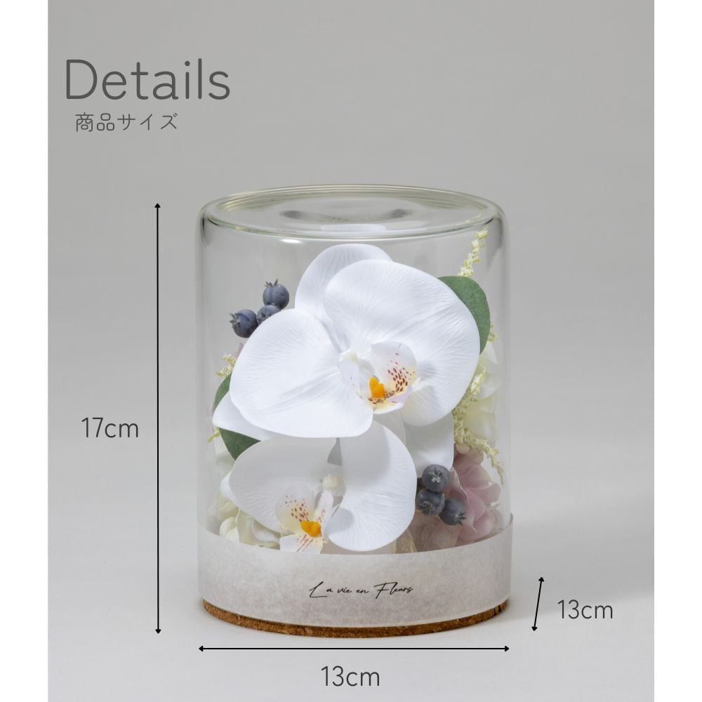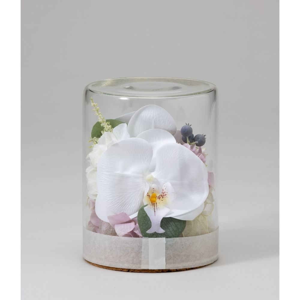 ガラスドームの中に咲く、やさしく可憐な胡蝶蘭。