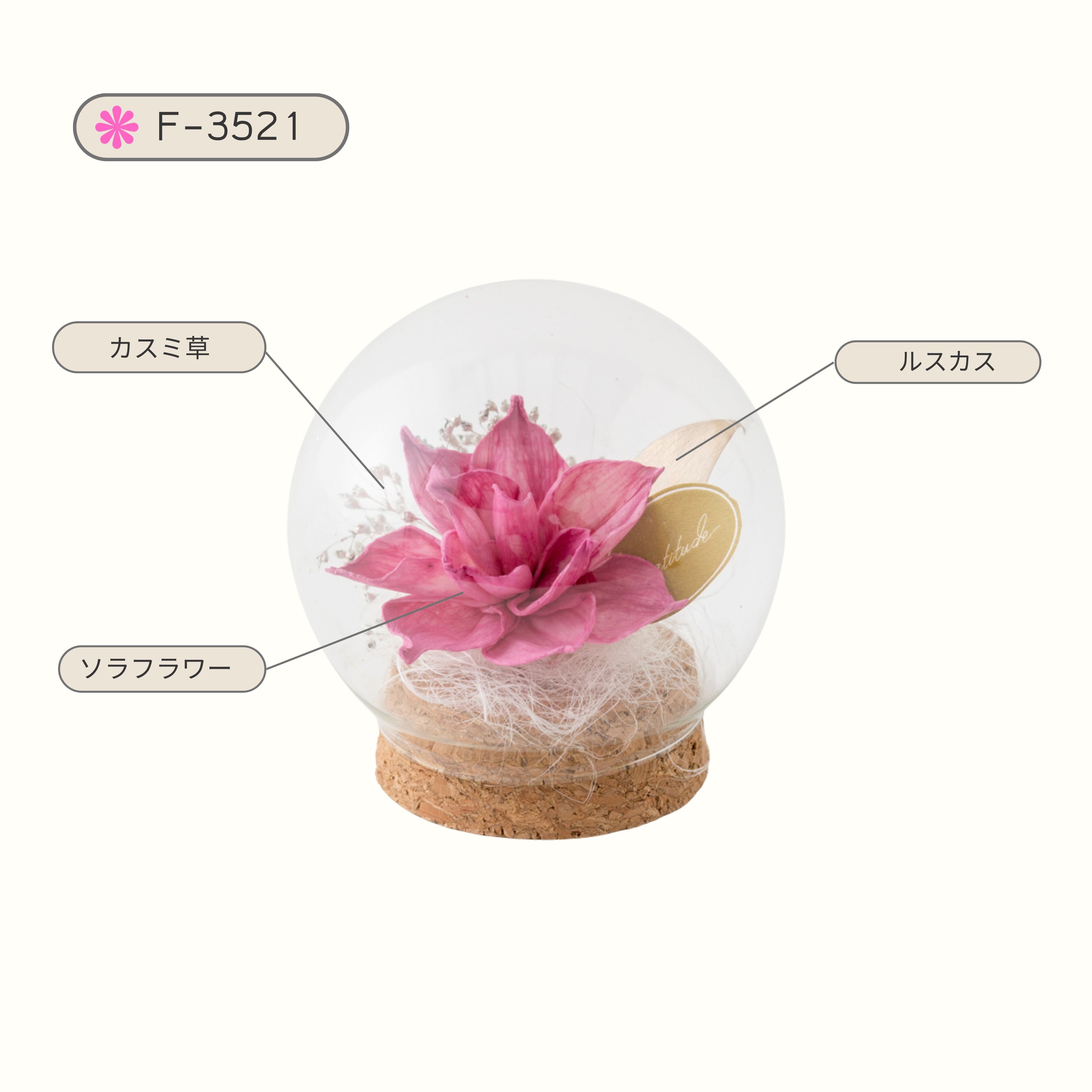 コルクベースのガラスドームに、優しいピンクのソラフラワーを一輪閉じ込めました。